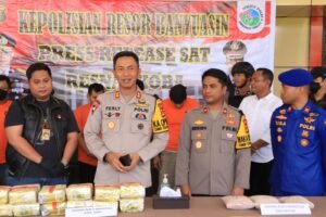 “Kelima tersangka saat ini telah diamankan di Mapolres Banyuasin untuk menjalani pemeriksaan lebih lanjut. Mereka dijerat dengan Pasal 114 ayat (2) subsider Pasal 112 ayat (2) Undang-Undang Nomor 35 Tahun 2009 tentang Narkotika,” ujar Kapolres.(ida)