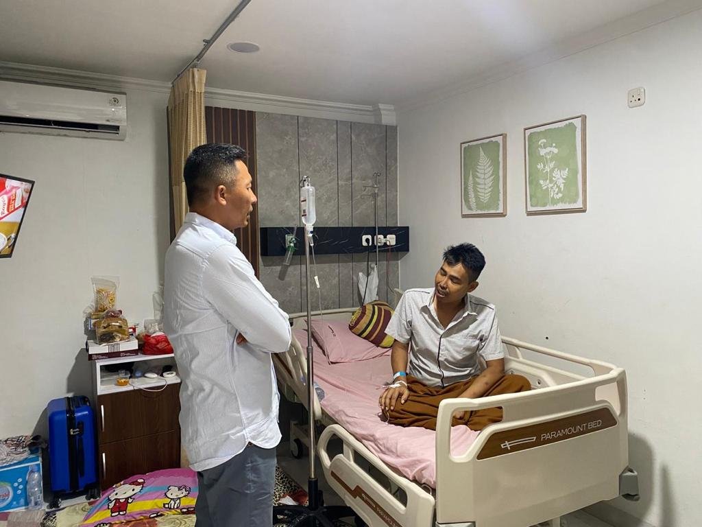 Kapolres Banyuasin AKBP Ferly Rosa Putra SIK menjenguk Bripka Eko Handono dan Bripka Ari Satria SH yang sedang dirawat di Rumah Sakit Bhayangkara Palembang, Minggu (5/2/24).