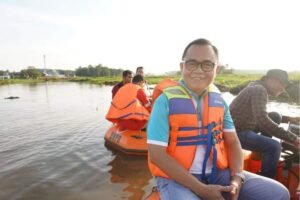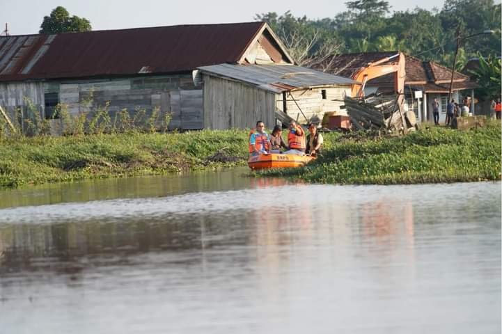 Pj Bupati beserta rombongan menyusuri Boom Berlian dengan menggunakan perahu karet orange milik Badan Penanggulangan Bencana Daerah (BPBD) Kabupaten Banyuasin meninjau langsung progress normalisasi dari titik awal sungai boom dekat pemukiman warga hingga titik normalisasi sungai sesuai perencanaan yang sudah berlangsung sejak Desember 2023 lalu.