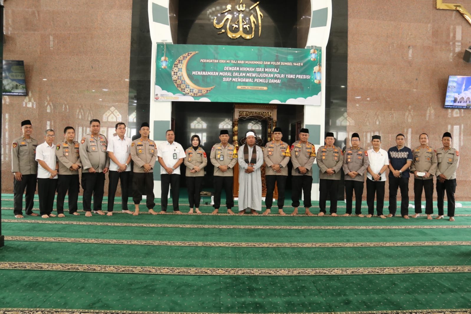 Dalam sambutannya Irwasda Polda Sumsel mengatakan, Peringatan Isra Mi’raj Nabi Muhamad SAW merupakan peristiwa yang luar biasa memperlihatkan kekuasaan Allah SWT kepada Rasulullah dan umat manusia. Peristiwa Isra’ dan Mi’raj yang dialami oleh Nabi Muhammad SAW dari Masjidil Harom ke Masjidil Aqsho di Palestina merupakan mukjizat yang dianugerahkan oleh Allah SWT kepada satu-satunya hamba dan rasulnya Muhammad SAW, yang menurut Tarikh Islam terjadi pada tanggal 27 Rajab tahun ke sebelas dari kenabian Rasulullah SAW ucap mantan Karo OPS Polda Jambi
