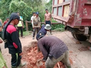 “Masyarakat gotong royong memperbaiki jembatan tersebut dan kami juga minta bantuan perusahaan plat drum untuk lantai jembatan dengan cara dilas dan setelah itu ditimbun dengan tanah,