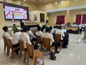 POLRES BANYUASIN,SRIWIJAYAPERTAMA.NET – Pada hari Senin 13 Mei 2024 menerima kunjungan dari tim supervisi Direktorat Reserse Narkoba (Resnarkoba) Polda Sumsel yang dipimpin oleh AKBP H Muhammad Syeh K ST SH MH selaku Kabag Wassidik Ditresnarkoba Polda Sumsel di Aula Sanika Satyawada