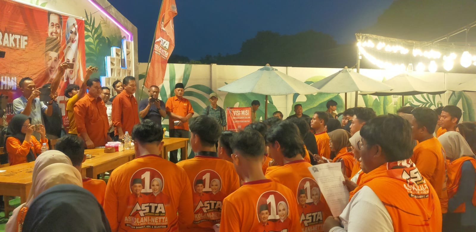 Dalam Dialog interaktif dan silaturahmi tersebut H Askolani didampingi Panglima Pemenangan H Askolani – Netta Indian (ASTA) dan Koordinator Persatuan Mahasiswa Banyuasin (PMB) Sumsel Irfansyah yang digelar di Mie Gacoan Jalan Opi Raya Sungai Kedukan Kecamatan Rambutan Kabupaten Banyuasin.