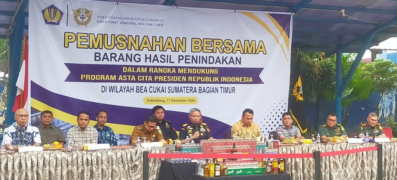 Palembang.sriwijayapertama.net – Kantor Wilayah (Kanwil) Direktorat Jenderal Bea Cukai (DJBC) Sumatera Bagian Timur (Sumbagtim) gelar pemusnahan barang hasil penindakan selama periode 2021-2024, dalam rangka mendukung program asta cita Presiden Republik Indonesia (RI), H Prabowo Subianto.