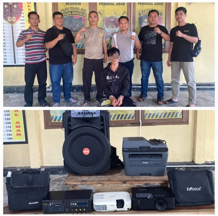 Barang bukti yang berhasil diamankan meliputi dua unit proyektor, satu unit printer, satu unit speaker, dan satu unit amplifier. Barang-barang ini diduga kuat merupakan hasil dari aksi pencurian yang dilakukan tersangka.