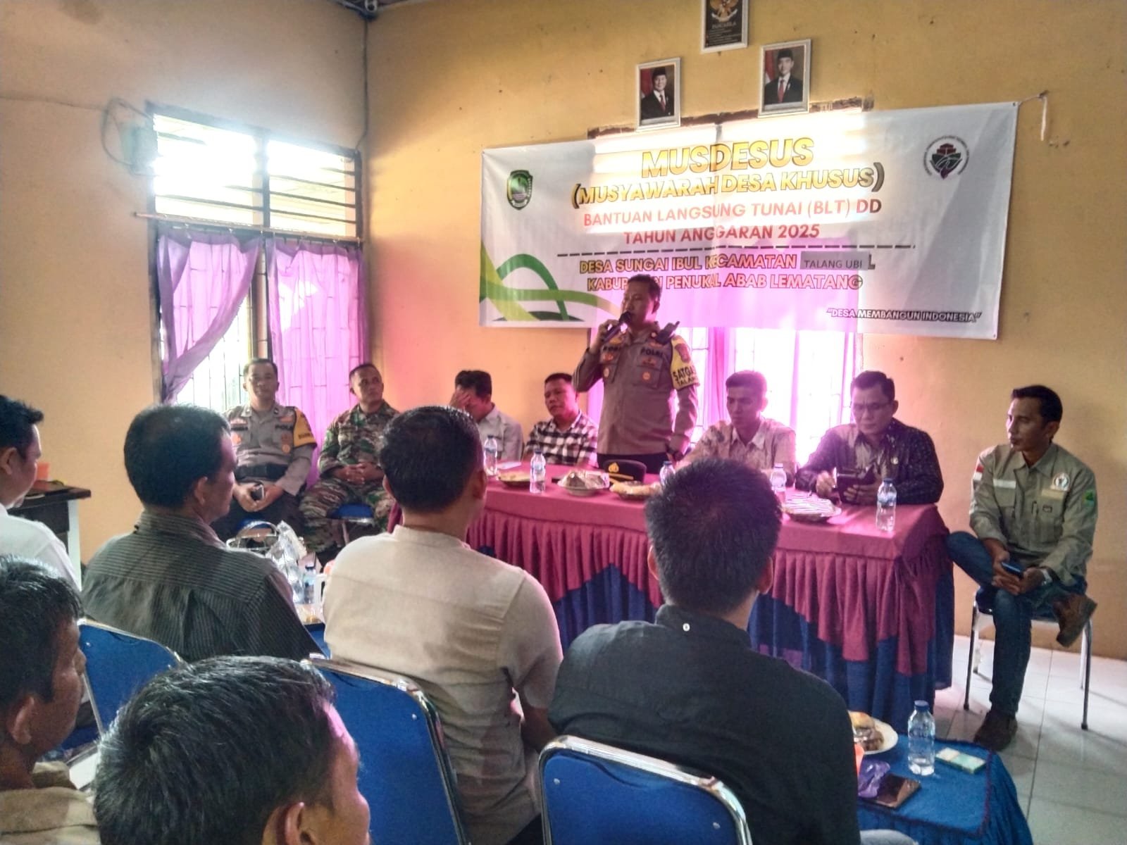 Dalam upaya merealisasikan program pembangunan berbasis keadilan sosial, Pemerintah Desa Sungai Ibul, Kecamatan Talang Ubi, Kabupaten Penukal Abab Lematang Ilir (PALI), menyelenggarakan Musyawarah Desa Khusus (MUSDESSUS) guna menetapkan calon penerima Bantuan Langsung Tunai (BLT) dari Dana Desa (DD) tahun 2025.