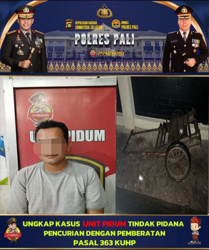 Barang bukti yang berhasil diamankan dalam kasus ini antara lain satu unit gerobak dorong kayu dan rekaman video CCTV. Tersangka kini ditahan di Mapolres PALI untuk proses hukum lebih lanjut dan dijerat dengan Pasal 363 KUHP tentang Pencurian dengan Pemberatan.