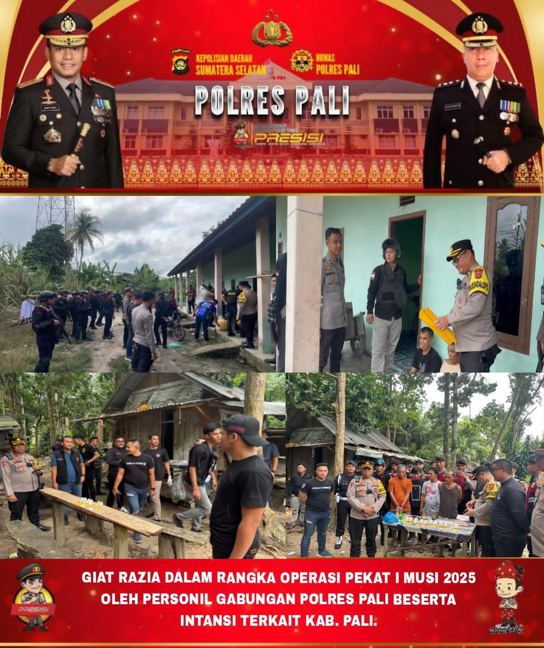 Kepolisian Resor (Polres) PALI bersama instansi terkait menggelar razia gabungan dalam rangka Operasi Pekat I Musi 2025 pada Kamis (27/2). Kegiatan yang dipimpin langsung oleh Kapolres PALI, AKBP Khairu Nasrudin, S.I.K., M.H., ini berhasil mengamankan sembilan orang yang diduga terlibat dalam penyalahgunaan narkoba.