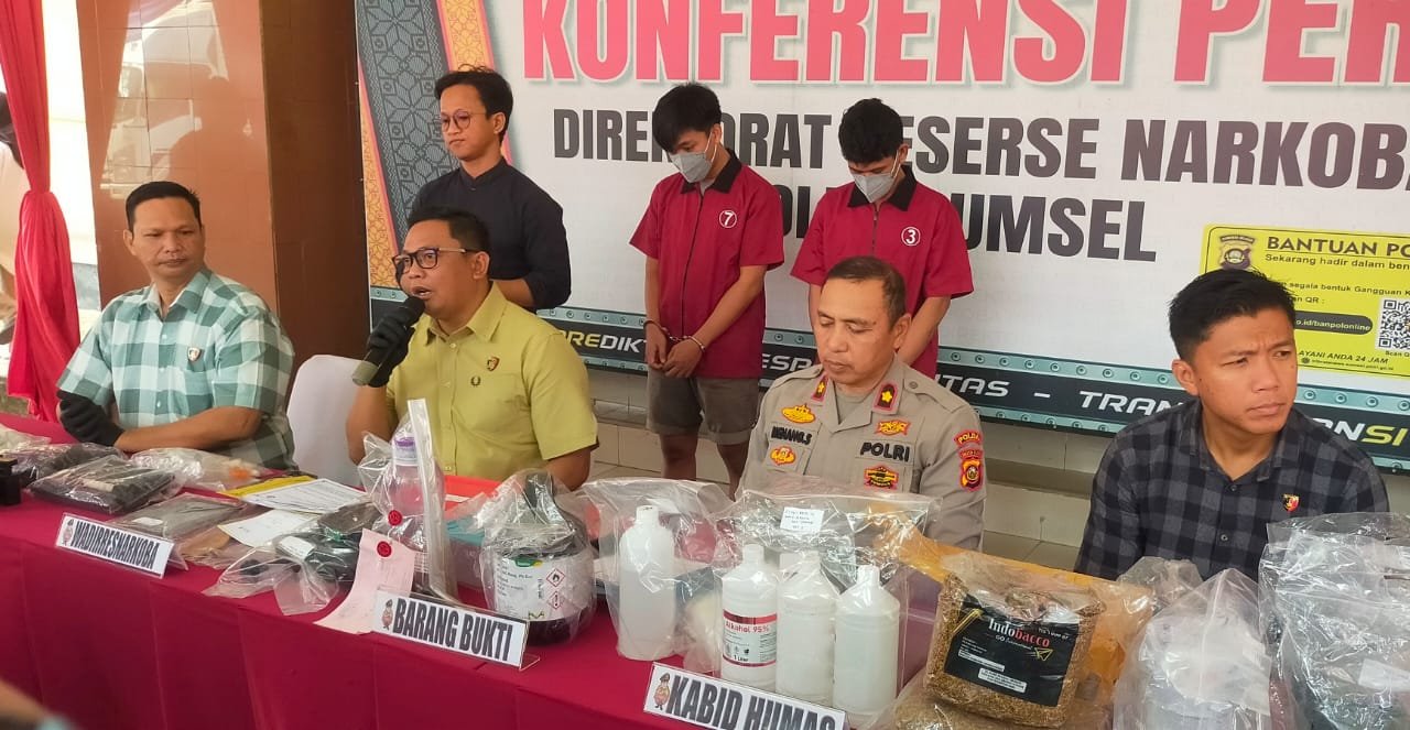 Palembang.sriwijayapertama.net, – Direktorat Reserse Narkoba (Ditresnarkoba) Polda Sumatera Selatan (Sumsel) gelar konferensi pers dengan awak media terkait ungkap kasus sindikat home industri pembuatan narkoba jenis sintesis cair atau sinte di Kota Palembang.