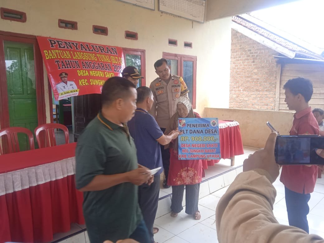Dalam rangka pembagian BLT-DD Tahun 2025 di Desa Negeri Sakti kecamatan Sungkai baràt Kabupaten Lampung Utara ada sekitar 2o KPM Terima BLT -DD Tahap 1 tahun 2025 yang di salurkan oleh Pemerintah Desa ( Pemdes) NegeriSakti, Kecamatan Sungkai barat bertempat di Balai desa Negeri Sakti Pembagian langsung di bagikan oleh Kepala desa Hendri secara simbolis yang berjumlah Rp 300.000/bulan selama 3 bulan ,Januari Februari dan Maret.