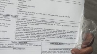Karena merasa ditipu dan tidak ada itikad baik, maka pada Sabtu (19/04) sekira pukul 21,05 Wib AR melaporkannya ke Polrestabes Palembang dengan Laporan Polisi Nomor: LP/B/1159/IV/2025/SPKT/Polrestabes Palembang/Polda Sumatera Selatan.
