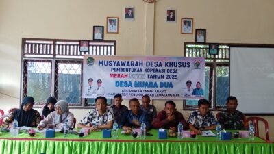 Pemerintah Desa Muara Dua, Kecamatan Tanah Abang, kabupaten Penukal Abab Lematang Ilir (PALI), Sumatera Selatan, menunjukan Komitmen kuat dalam mendukung Program pemerintah pusat dengan menggelar musyawarah desa (MUSDESUS), Jumat (02/05/2025),