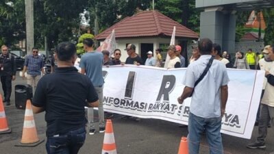 Palembang.sriwijayapertama.net – Ratusan massa yang tergabung dalam Komunitas Pemantau Korupsi (KPK) Nusantara Provinsi Sumatera Selatan (Sumsel) gelar aksi damai di Depan Kantor Perwakilan Inspektur Tambang Provinsi Sumsel, Kemen ESDM, Jalan Kolonel H Burlian Kecamatan Sukarami Kota Palembang, Kamis (22/5/2025).