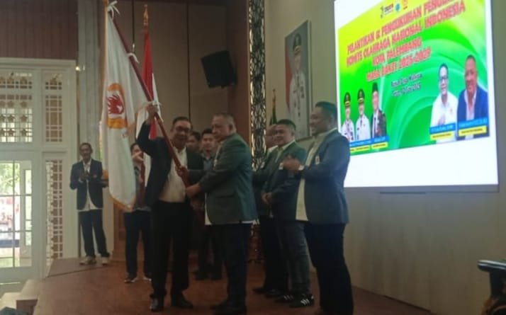 Ketua Komite Olahraga Nasional Indonesia (KONI) Provinsi Sumatera Selatan (Sumsel) diwakili Sekretaris Umumnya, Tubagus Sulaiman melantik dan mengukuhkan pengurus KONI Kota Palembang periode 2025-2029 di Rumah Dinas Walikota, Jalan Tasik Kecamatan Bukit Kecil Kota Palembang, Senin (2/5/2025).