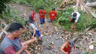 menjelang 17 Agustus 2025 pemerintah Desa Muara Dua kecamatan Tanah Abang, kabupaten Penukal Abab lematang ilir (PALI), Sumatera Selatan, Bergotong royong Membersihkan Sepanjang Aliran Sungai Penyeluangan