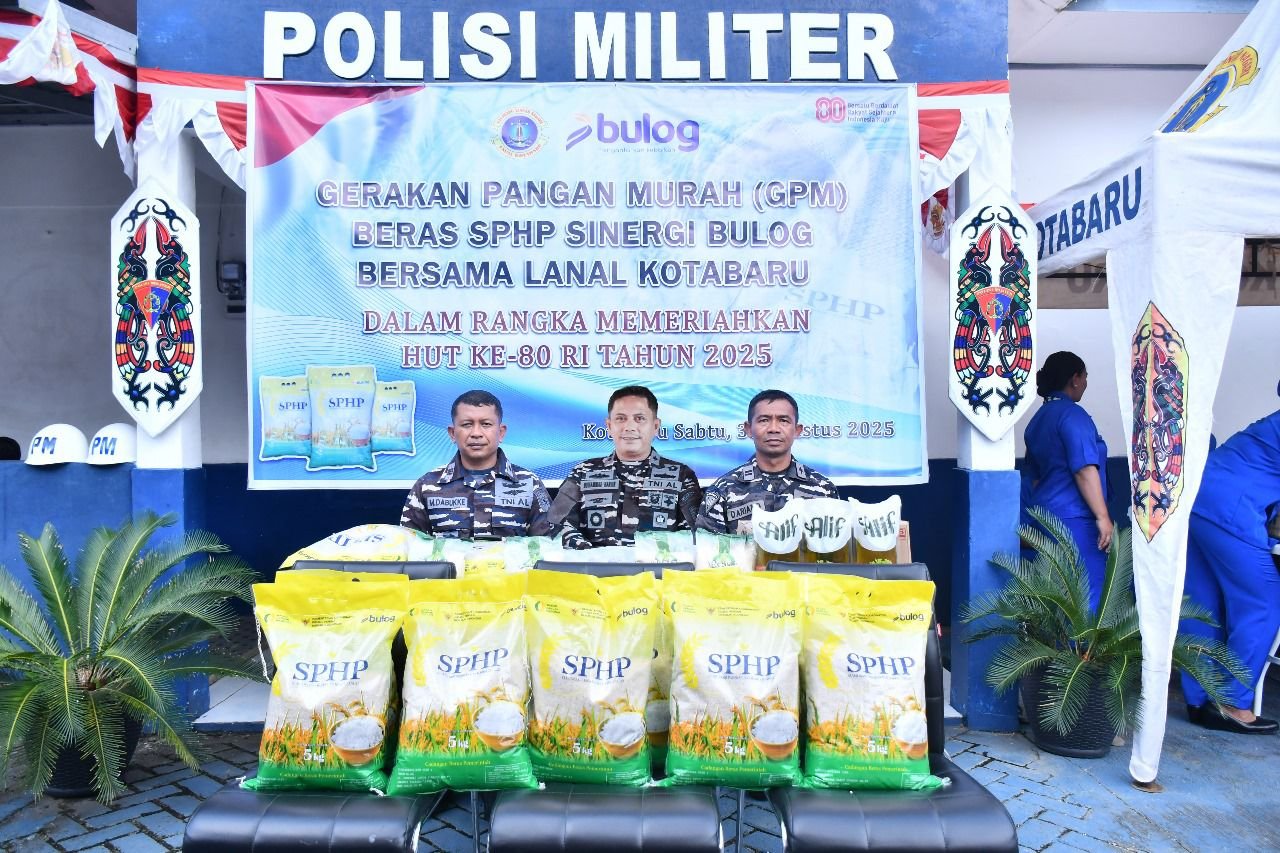 Kotabaru, Sriwijaya pertama.net – ๐ป๐๐๐๐๐๐๐ ๐ป๐๐๐๐๐ ๐ต๐๐๐๐๐ – Dalam rangka HUT Kemerdekaan RI ke-80 2025, Komandan Lanal Kotabaru Letkol Laut (P) M. Harun AL Rasyid, S.T., M.Tr.Opsla., menggelar Gerakan Pangan Murah (GPM) mengikuti Vicon secara serentak dalam mendukung terwujudnya swasembada pangan yang dilaksanakan di halaman Kantor Denpomal Lanal Kotabaru, Sabtu (30/8/2025)