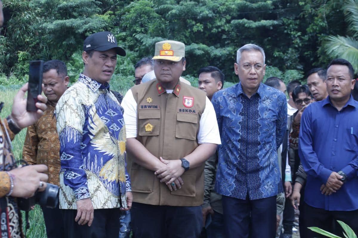 Banyuasin I, Sriwijayapertama.net — Sebagai lumbung pangan nomor 2 nasional, Kabupaten Banyuasin terus meningkatkan target produksi padi di Kabupaten Banyuasin dan terus mendukung program swasembada pangan dengan bekerja sama dengan pemerintah pusat dan provinsi. Hal ini disampaikan oleh Sekretaris Daerah, Ir. Erwin Ibrahim, ST., MM., MBA., IPU., ASEAN.Eng mewakili Bupati Banyuasin, Dr. H. Askolani, SH., MH saat menyambut kedatangan Menteri Pertanian Republik Indonesia, Andi Amran Sulaiman di Desa Merah Mata, Jum’at (5/9/2025).