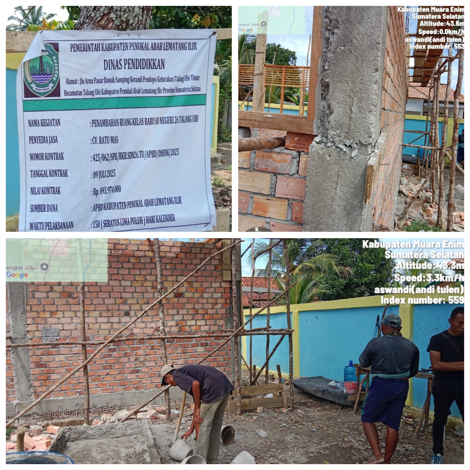 Pembangunan Penambahan Ruang Kelas di SD 26 Talang Ubi, Desa panta Dewa, Kecamatan Talang ubi, Kabupaten Penukal Abab Lematang Ilir (PALI), Sumatera Selatan, kembali menuai sorotan dari LSM Peduli Masyarakat Pali (PMP), jum’at (05/09/2025).