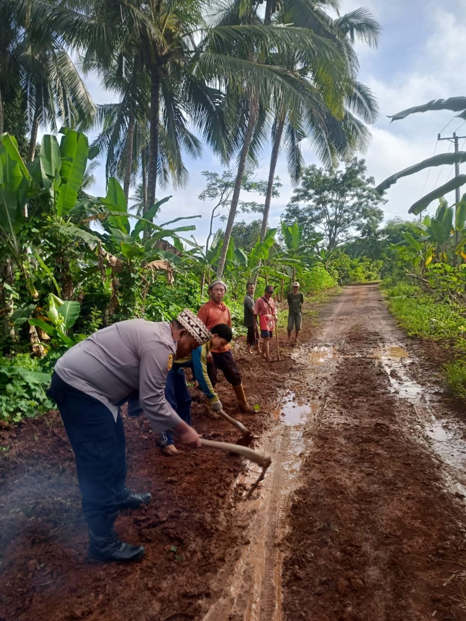 Seperti yang dilakukan Aipda Husni Tamrin pada, Minggu 14 September 2025, dia bersama warga Dusun 2, Desa Sabuk Empat, Kecamatan Way Kunang menggiatkan kegiatan bersih-bersih badan jalan yang tertutup oleh tanah yang terbawa arus air pada saat hujan turun.