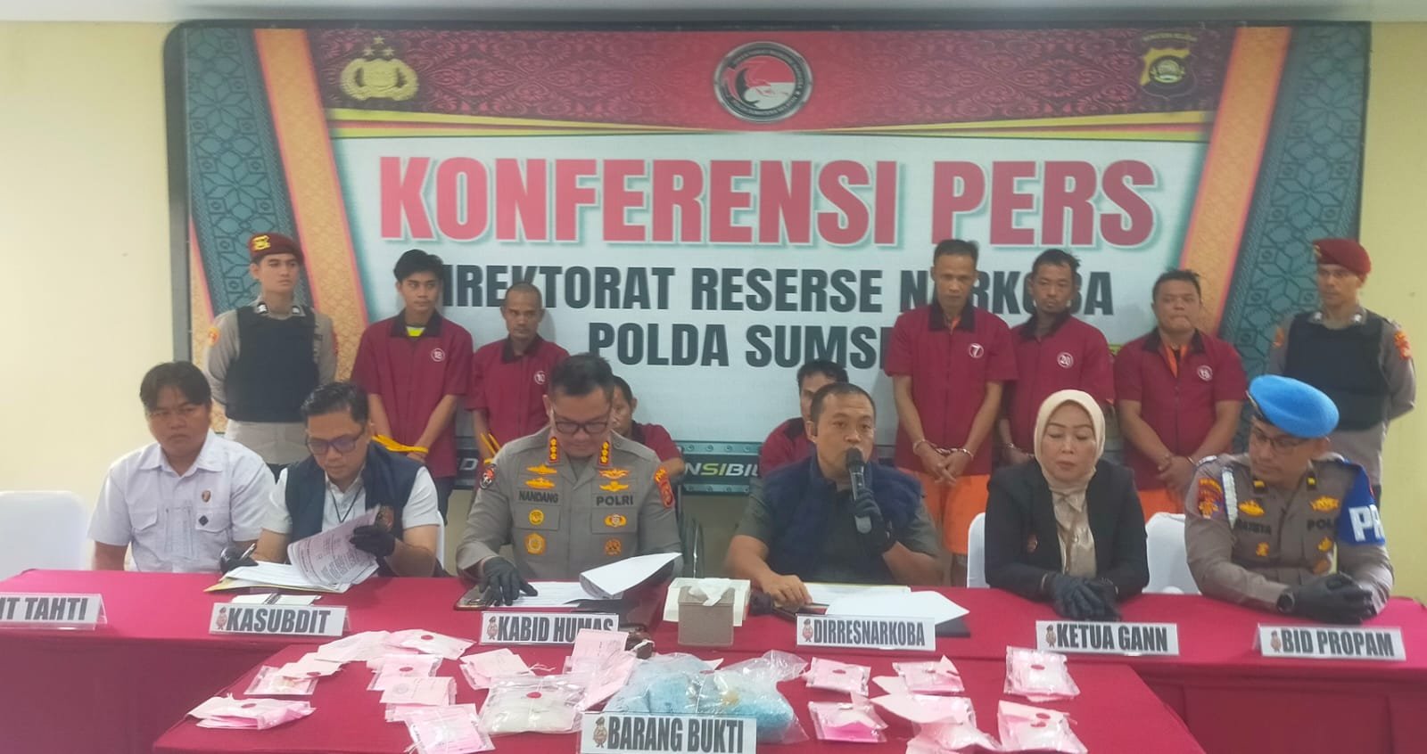 Palembang.sriwijayapertama.net – Direktorat Reserse Narkoba (Ditresnarkoba) Polda Sumatera Selatan (Sumsel) gelar konferensi pers dengan awak media di Gedung Presisi Mapolda Sumsel, Rabu (1/10/2025)