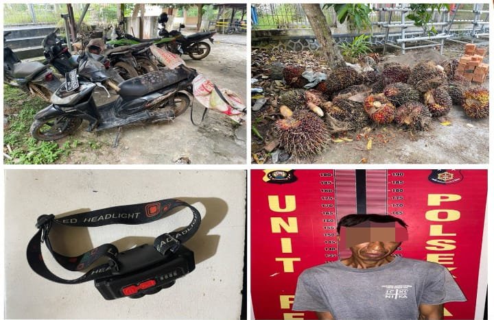 Tak lama berselang,Tim Elang Unit Reskrim yang dipimpin Panit I dan Panit II Reskrim tiba di lokasi dan berhasil mengamankan satu pelaku beserta barang bukti, yaitu 31 tandan buah sawit, 1 unit sepeda motor Honda Beat warna hitam BG 4497 SJ, serta 1 buah senter hitam tanpa merek.