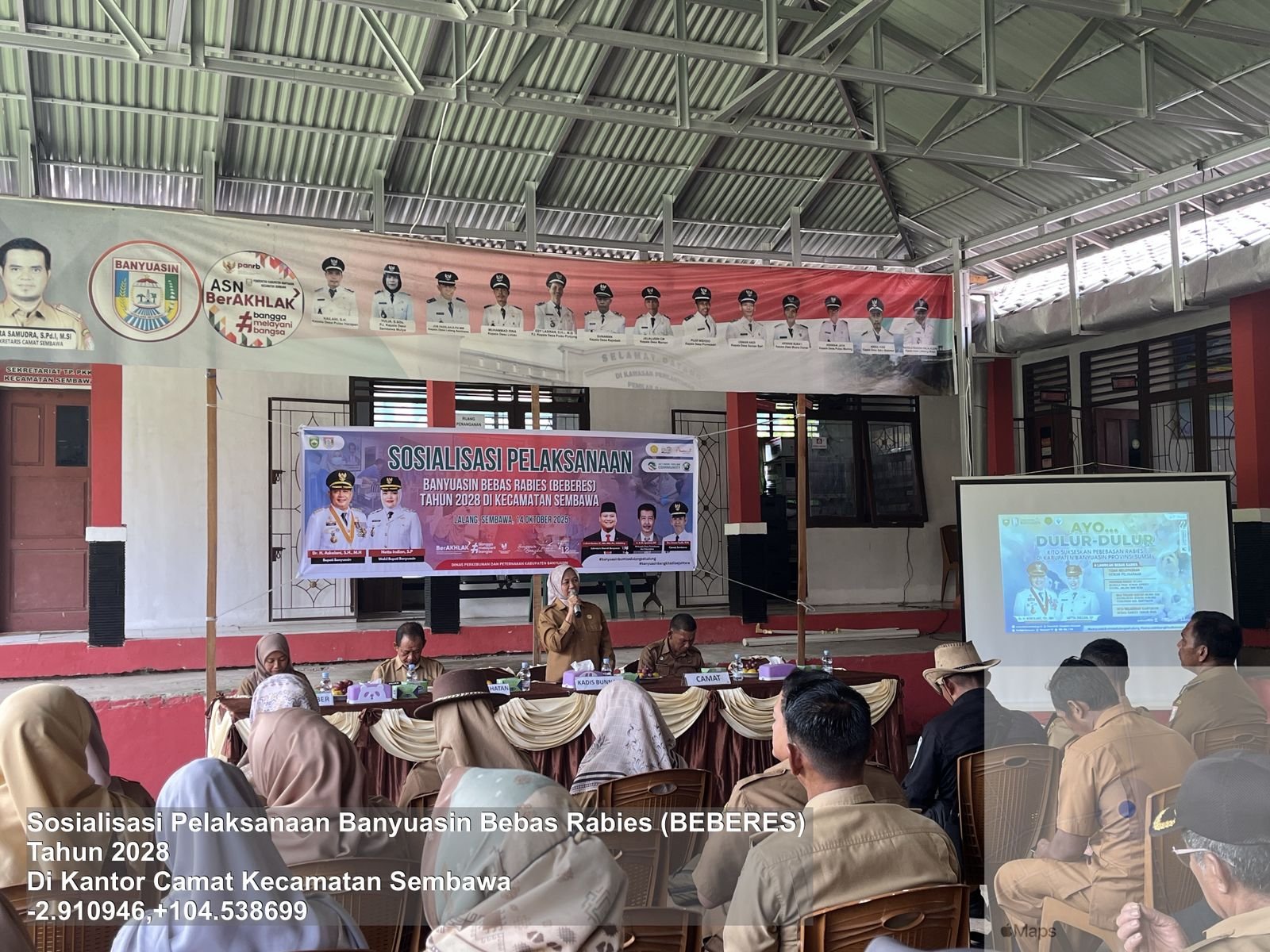 Camat Sembawa yang diwakili oleh Plh. sekcam Muslim Ansori, SH. mengajak seluruh Kepala Desa untuk bersama-sama berkomitmen mewujudkan Banyuasin Bebas Rabies Tahun 2028 dengan melakukan pendataan hewan penyebab rabies karena kepala Desa yang tahu kondisi wilayahnya, menghimbau masyarakat untuk melakukan vaksinasi pada hewan peliharaan seperti anjing, kucing dan Kera.