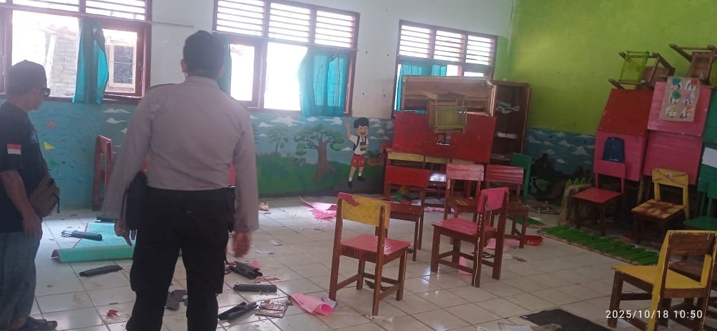 Agus, anggota Polsek Sungkai Jaya yang turun langsung ke lokasi, menyarankan pihak sekolah untuk sementara menutup jendela yang rusak dengan papan kayu demi keamanan.