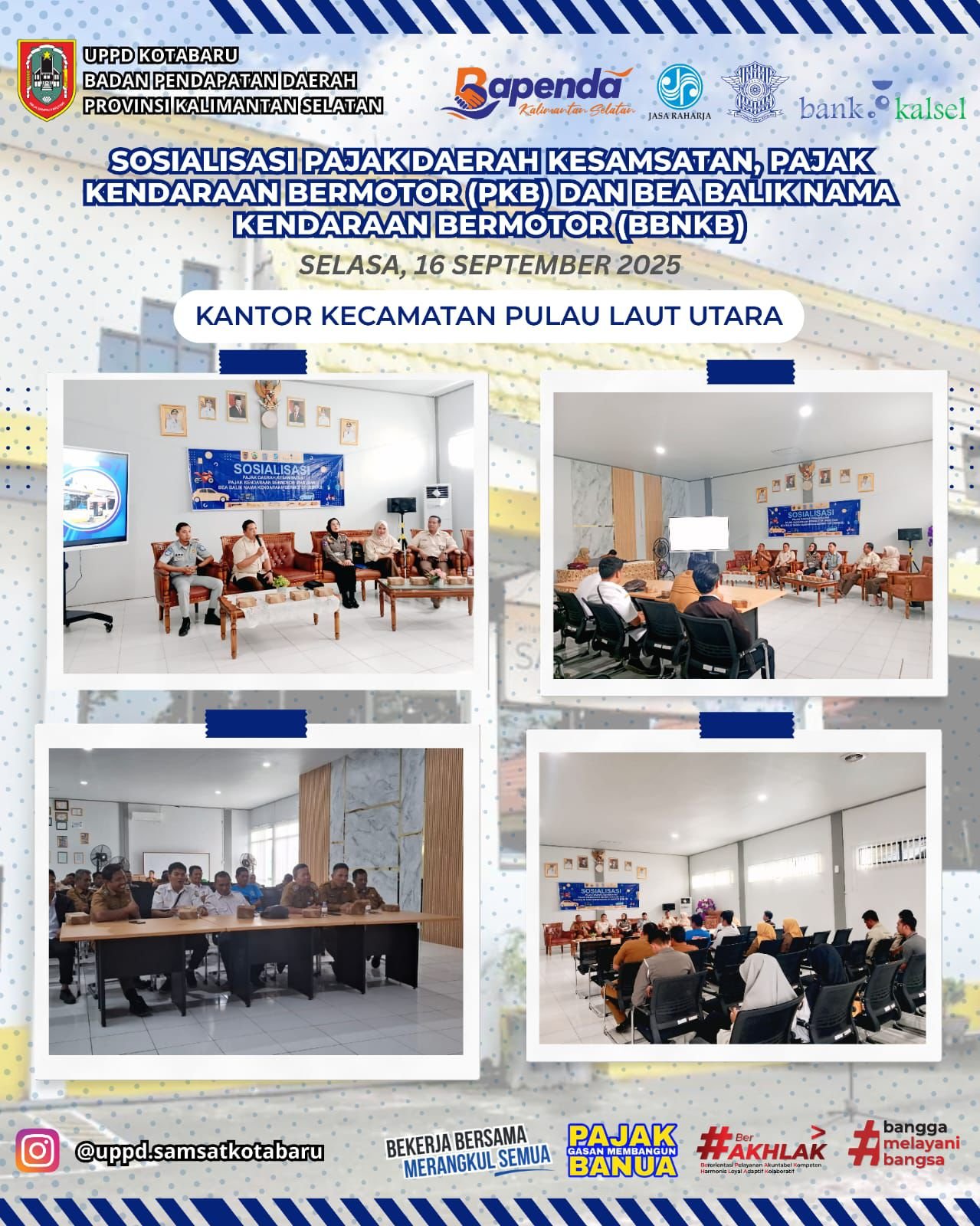 “Layanan jemput antar adalah layanan unggulan yang ada di UPPD Samsat Kotabaru, yang bertujuan memberikan kemudahan para wajib pajak dalam membayar pajak tanpa harus pergi ke kantor Samsat,” ucapnya, Selasa (22/10/2025)