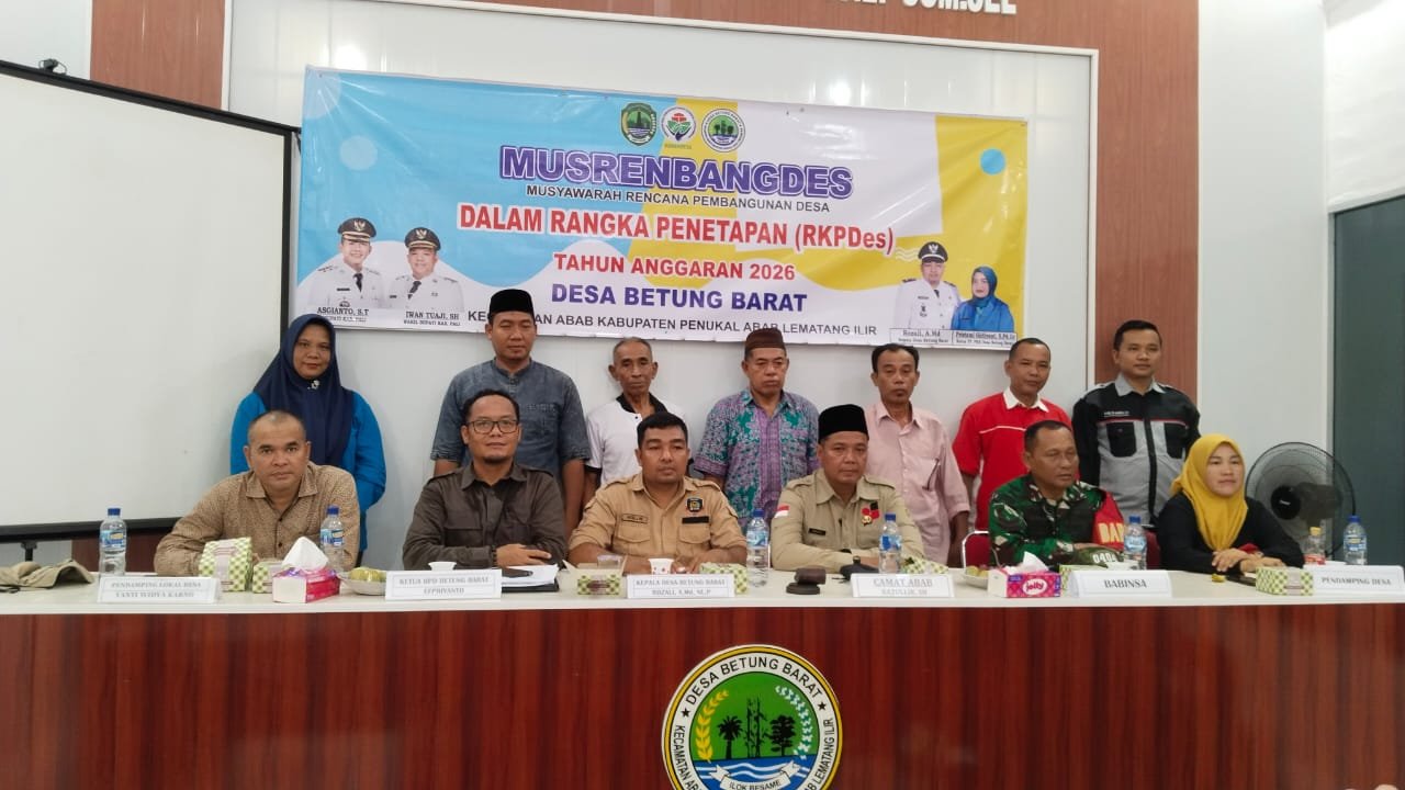 Kegiatan tersebut dilaksanakan di Kantor Desa Betung Barat, Kecamatan Penukal Abab, Kabupaten Penukal Abab Lematang Ilir (PALI), Sumatera Selatan, Kepala Desa Betung Barat, Camat Abab Razullik SH, Perangkat Desa, Ketua BPD serta Anggota, Pendamping Desa, pendampingan lokal Desa, Tokoh masyarakat, tokoh pemuda, Bhabinsa, Bhabinkamtibmas serta masyarakat setempat.