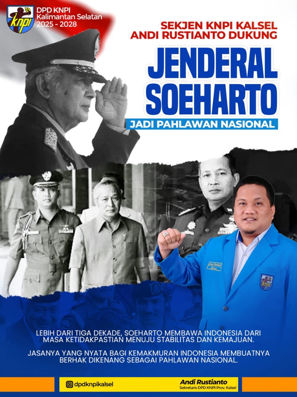 “Ia juga menambahkan, Presiden Republik Indonesia ke-2 Soeharto merupakan tokoh penting dalam sejarah Indonesia yang layak memperoleh penghargaan atas pengabdian dan kontribusinya selama masa perjuangan maupun kepemimpinan nasional.” Ujar Andi Rustianto, Kamis (6/11/2025)