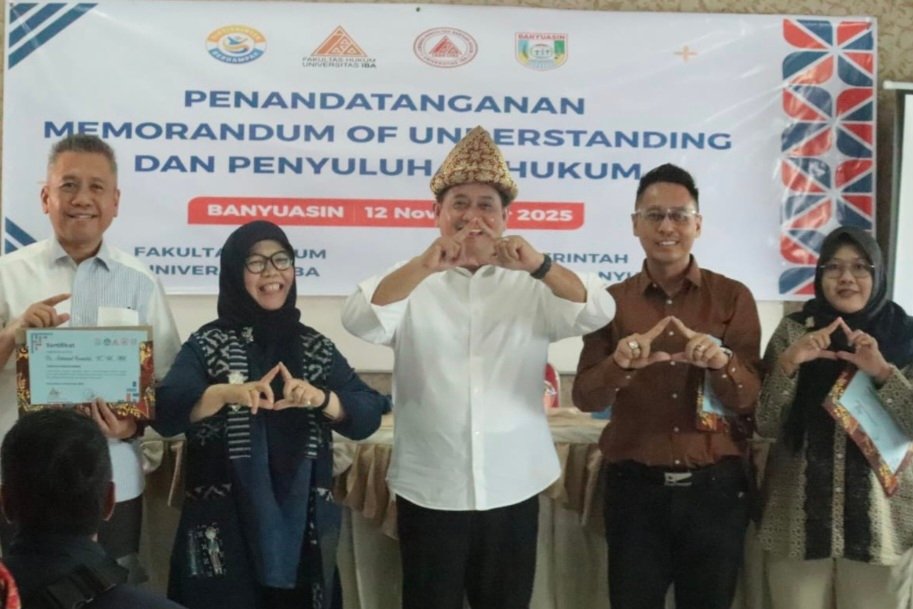 Banyuasin II, SriwijayaPertama.net — Bupati Banyuasin, Dr. H. Askolani, SH., MH didampingi oleh Kepala Dinas Pendidikan dan Kebudayaan Banyuasin, Dra. Yosi Zartini, MM resmi membuka Penyuluhan Hukum pada Penandatanganan Nota Kesepahaman antara Universitas IBA dengan Pemerintah Kabupaten Banyuasin dan Pemerintah Kecamatan diadakan di Ruangan Kelas SMPN I Banyuasin II, Rabu (12/11/2025).