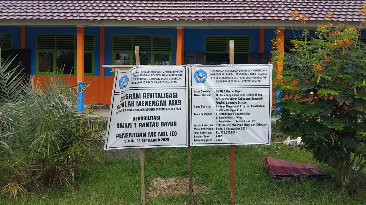 Banyuasin sriwijayapertama – Upaya pemerintah meningkatkan kualitas layanan pendidikan terus digencarkan. Tahun ini, SMAN 1 Rantau Bayur yang berada di Kecamatan Rantau Bayur, Kabupaten Banyuasin, menjadi salah satu sekolah yang menerima bantuan revitalisasi melalui Program Prioritas Presiden Republik Indonesia Tahun 2025.