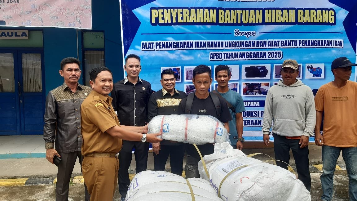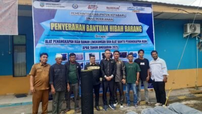 Kotabaru Kalsel, Sriwijayapertama.net – Pemerintah Kabupaten Kotabaru melalui Dinas Perikanan Kotabaru bersama Ketua Komisi II dan anggota DPRD Kotabaru serahkan bantuan alat tangkap kepada 13 kelompok nelayan dari 22 Desa di 6 Kecamatan, Kabupaten Kotabaru secara simbolis, dihalaman Kantor Dinas Perikanan, Senin (24/11/2025)
