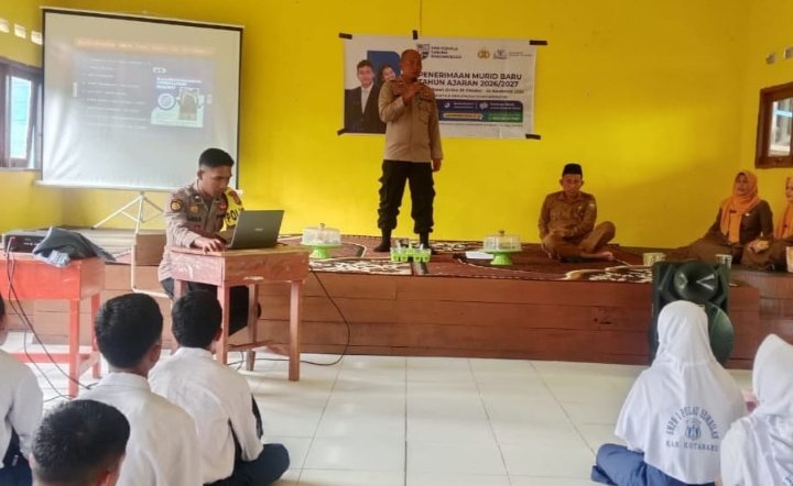 Kotabaru, Kalsel.sriwijayapertama.net – Memasuki periode penerimaan siswa baru, Polsek Pulau Sembilan gencar melakukan sosialisasi untuk memperkenalkan sekolah unggulan Polri, SMA Kemala Taruna Bhayangkara, kegiatan ini dilaksanakan di SMP Negeri 1 Pulau Sembilan, Senin (24/11/2025)