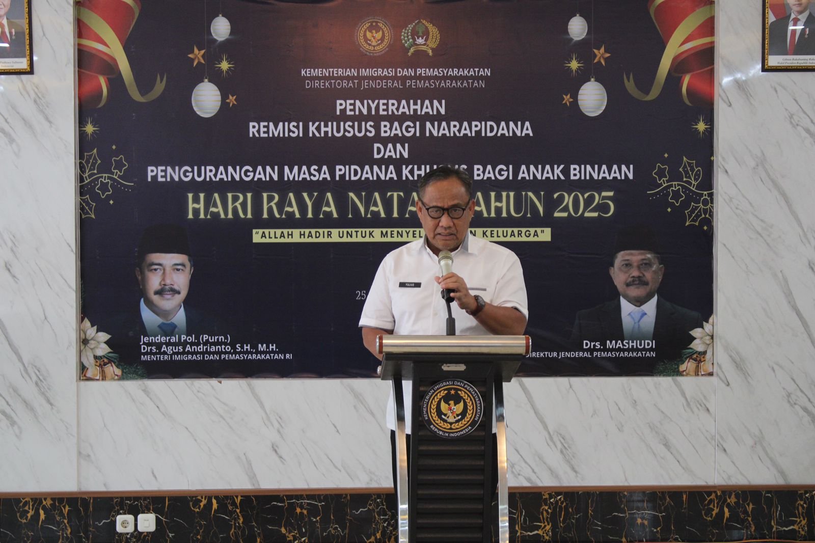 Dalam sambutannya, Direktur Binapi Ditjenpas Yulius Sahruzah membacakan sambutan dari Menteri Imigrasi dan Pemasyarakatan Republik Indonesia, ia menyampaikan bahwa pemberian remisi merupakan bagian dari pemenuhan hak warga binaan yang telah memenuhi persyaratan administratif dan substantif sesuai ketentuan peraturan perundang-undangan. Menteri menegaskan bahwa remisi diharapkan dapat menjadi motivasi bagi warga binaan untuk terus berperilaku baik dan aktif mengikuti program pembinaan.