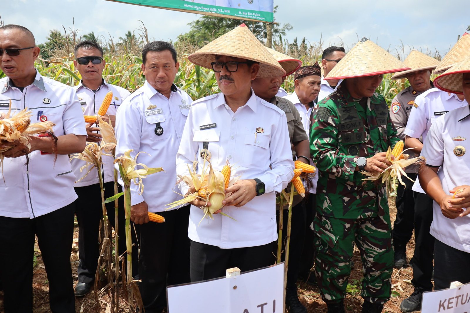 Kotabumi ||SriwijayaPertama.net — Bupati Lampung Utara, Dr. Ir. Hamartoni Ahadis, M.Si., bersama jajaran Forum Koordinasi Pimpinan Daerah (Forkopimda) Kabupaten Lampung Utara menghadiri Panen Raya Jagung yang dikelola oleh Badan Usaha Milik Desa (BUMDes) Gilih Mandiri di Desa Gilih Suka Negeri, Kecamatan Abung Selatan, sebagai bagian dari kunjungan kerja Pemerintah Daerah dalam mendukung penguatan ekonomi desa berbasis potensi lokal.