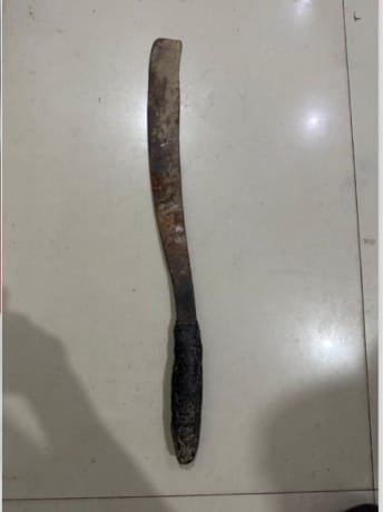 Dalam kondisi emosi, pelaku masuk ke dalam rumah dan mengambil sebilah parang, kemudian kembali mendatangi korban sambil mengibaskan senjata tajam tersebut ke arah korban disertai ancaman verbal. Korban yang ketakutan berusaha menyelamatkan diri, namun terjatuh hingga mengalami luka pada bagian bibir.