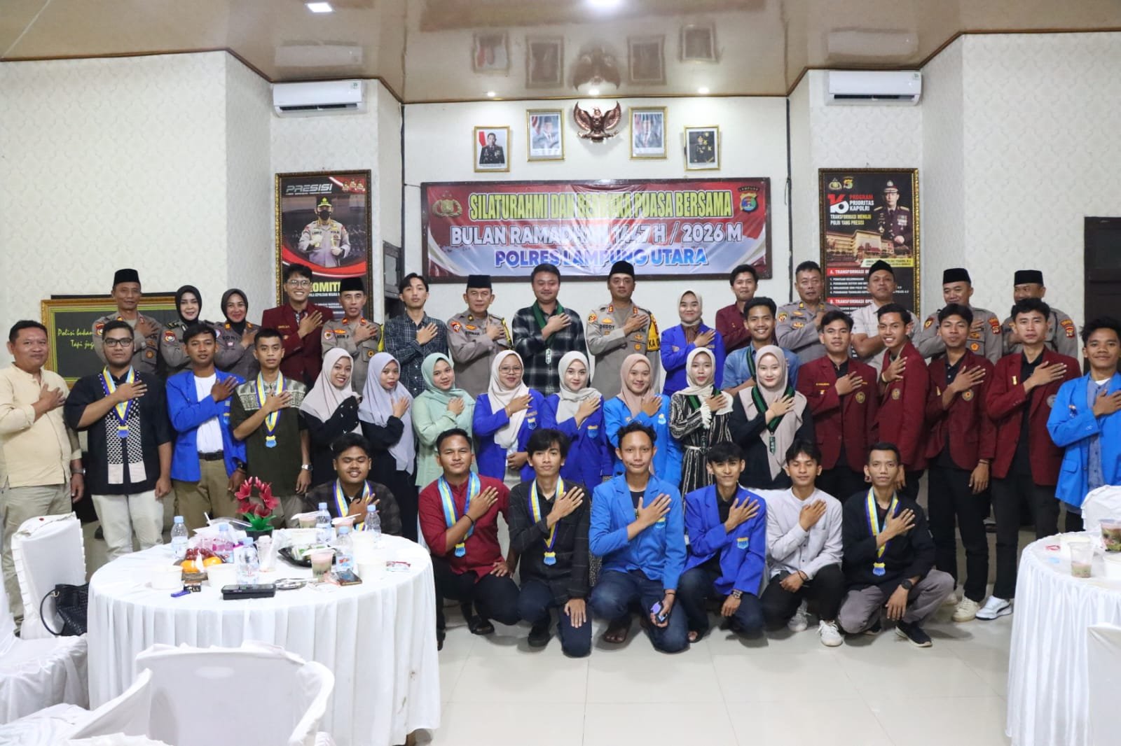 Lampung Utara||SriwijayaPertama.net – Dalam upaya mempererat sinergi dengan kalangan mahasiswa, Polres Lampung Utara menggelar kegiatan silaturahmi dan buka puasa bersama di Aula Rekonfu Mapolres Lampung Utara, Kamis (26/2/2026).