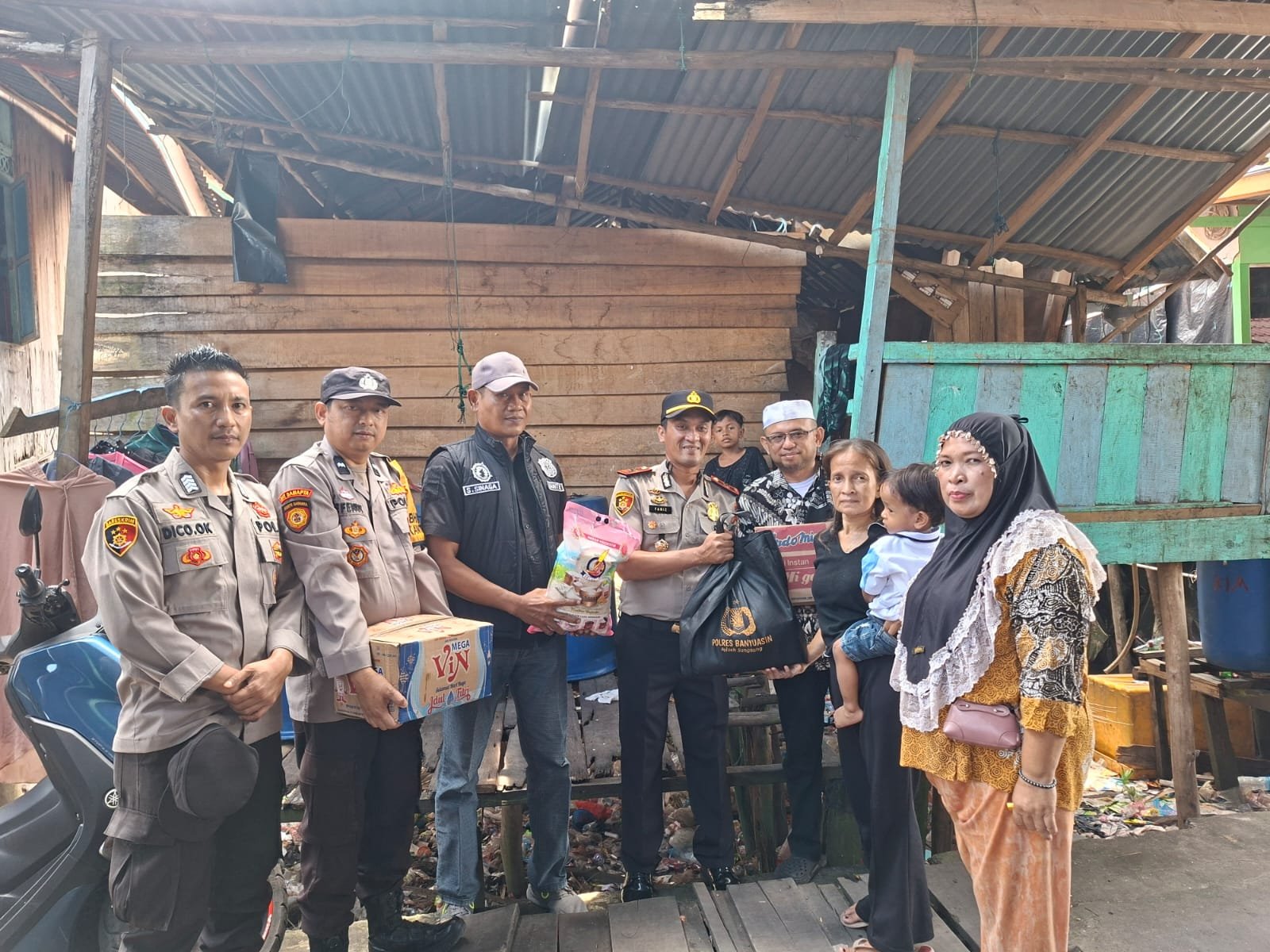 Menindaklanjuti musibah tersebut, Kapolsek Banyuasin II, IPTU Fariz Muhammad, S.H., bersama jajaran personil Polsek Banyuasin II serta unsur pemerintahan kecamatan dan desa setempat langsung bergerak cepat memberikan perhatian. Pada Selasa (31/3/2026) siang, pukul 12.30 WIB, mereka melaksanakan kegiatan pembagian Bantuan Sosial (Bansos) kepada keluarga korban.