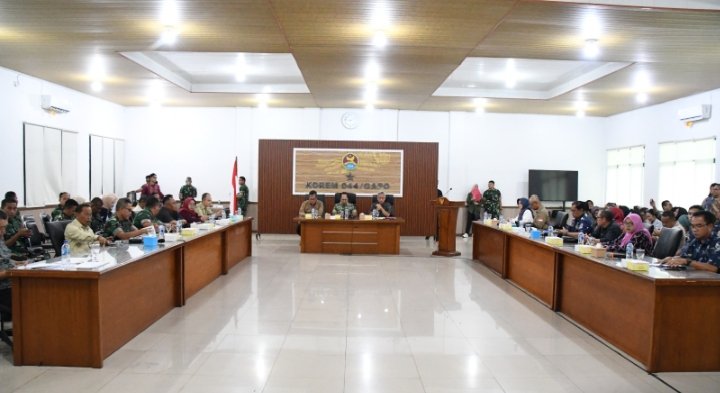 Rakor yang digelar di Aula Makorem 044/Gapo dihadiri secara langsung Danrem 044/Garuda Dempo Brigjen TNI Khabib Mahfud, S.I.P., M.M, Jumat (10/4/2026).